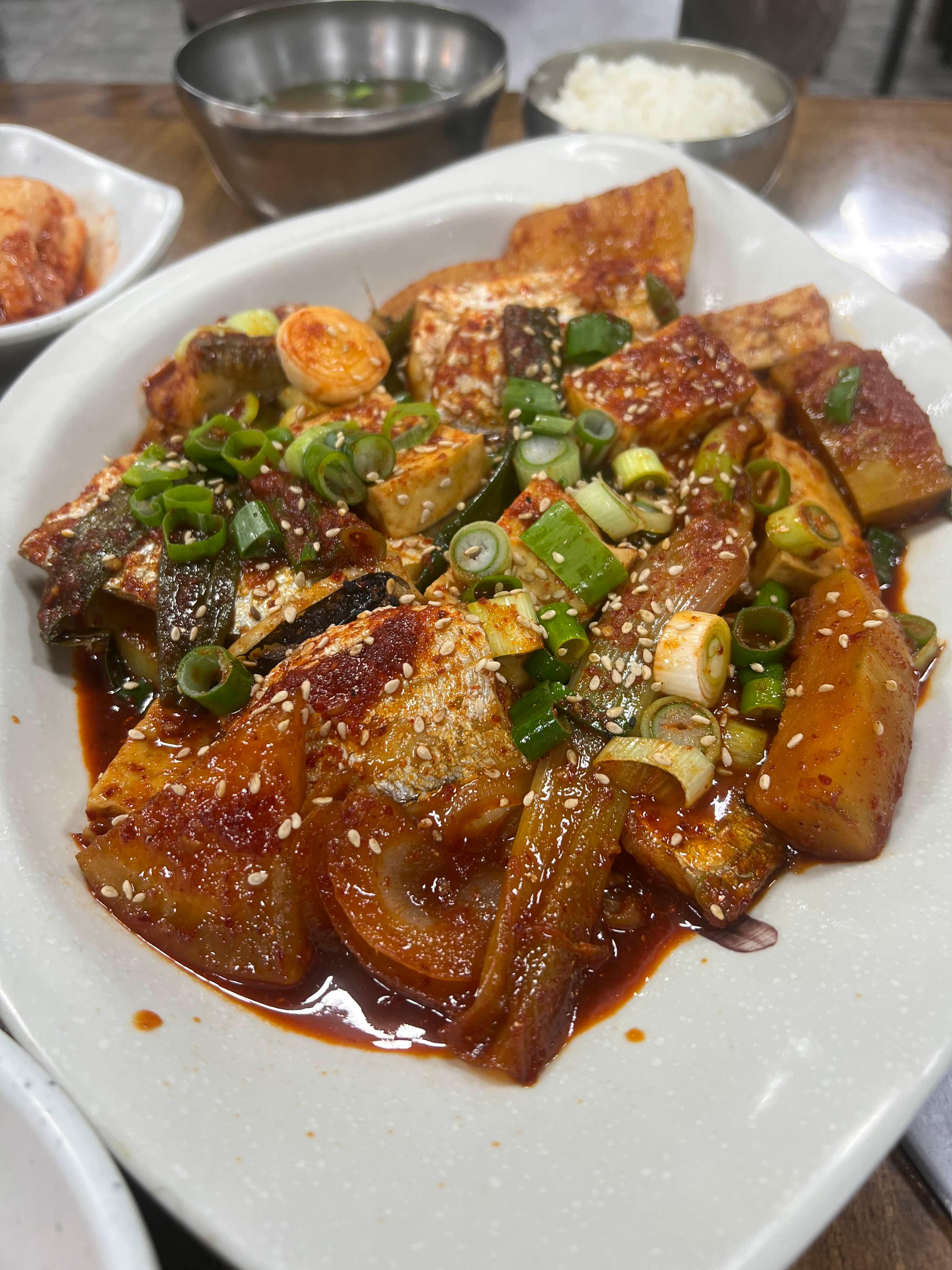 국내 최고의 당근을 생산하는 구좌가 바로 옆이니 갈치조림에 들어가는 당근도 당근 맛있고 제주 무도 시원함이 최고다. 당연히 제주는 콩도 좋다. 그러니 두부도 맛있다. 쓰고보니 다 말이 좋아하는 야채들이다. 당근, 콩, 무 모두 최고의 흙에서 최고의 바람과 햇빛 속에 자란 아이들이다. 그 아이들이 제주 청정 바다에서 자란 은갈치를 만났으니 맛이 있을 수밖에 없다.
